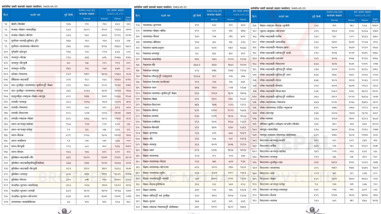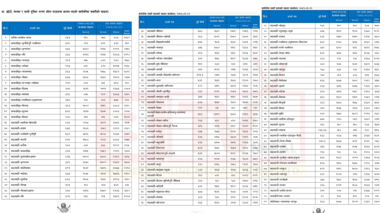 निर्धारित भाडादररेट निम्न रहेकाछन् ।