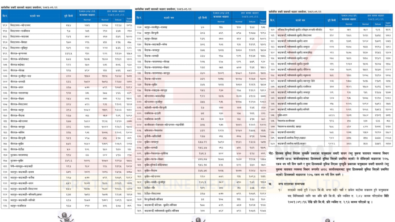 यातायात व्यवस्था विभागले सार्वजनिक गरेको नर्मल, डिलक्स र सुपर डिलक्सका आधारमा निर्धारण गरेको भाडादर सबैले आ आफ्नो सवारीसाधनमा र बुकिङ काउन्टरहरुमा सबै यात्रुहरुले देखिनेगरी टास्न र सोही अनुसार भाडा लिन र टिकट काट्न संगठनले श्रमिकहरुलाई आग्रह गरेको छ । यात्रुसंग बढी भाडा लिएको उजुरी परे सवारी तथा यातायात व्यवस्था ऐन २०४९ को दफा १६४ (थ) को कसुर अनुसार कानुनी कारबाही समेत हुन सक्ने भएकाले यसबारे सबै श्रमिकहरु सजग हुनुपर्ने संगठनले आह्वान गरेको छ ।